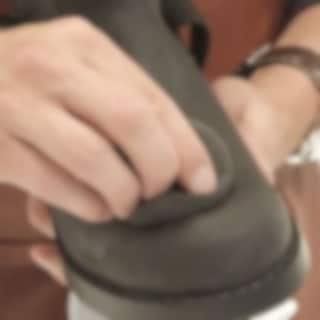 Ta bort eventuella skosnören och knäpp upp spännen. Borsta bort smuts med en skoborste och applicera rengöringsmedel med hjälp av en fuktig rengöringsduk. Rengör skon med duken och låt den torka naturligt.